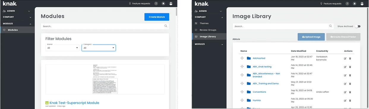 Knak, like FIGMA, has its own built-in module/asset library that allows all "builders" to access modules, images, and templates that have been created. While not as streamlined and effective as FIGMA's library, we can achieve version control and centralize global updates on the most important global modules. This allows us to update them once and push them across all applicable emails.