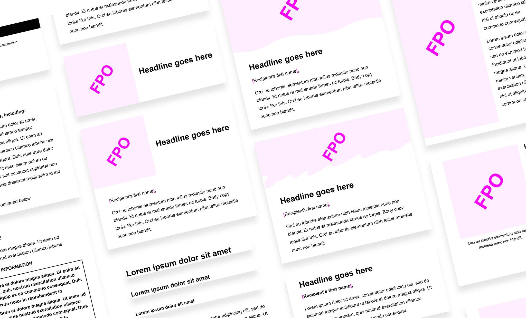 With the categories defined, the studio worked with the development team to lock in a shared set of benchmark settings: type hierarchy, grid, and scaling conventions agreed on by both sides. These became the structural foundation every email was built on, and they ensured files would render correctly across devices without needing fixes after handoff. From there, a catalog of brand-agnostic modules was built to those specs, each designed to be customized at the brand level without altering the underlying structure.