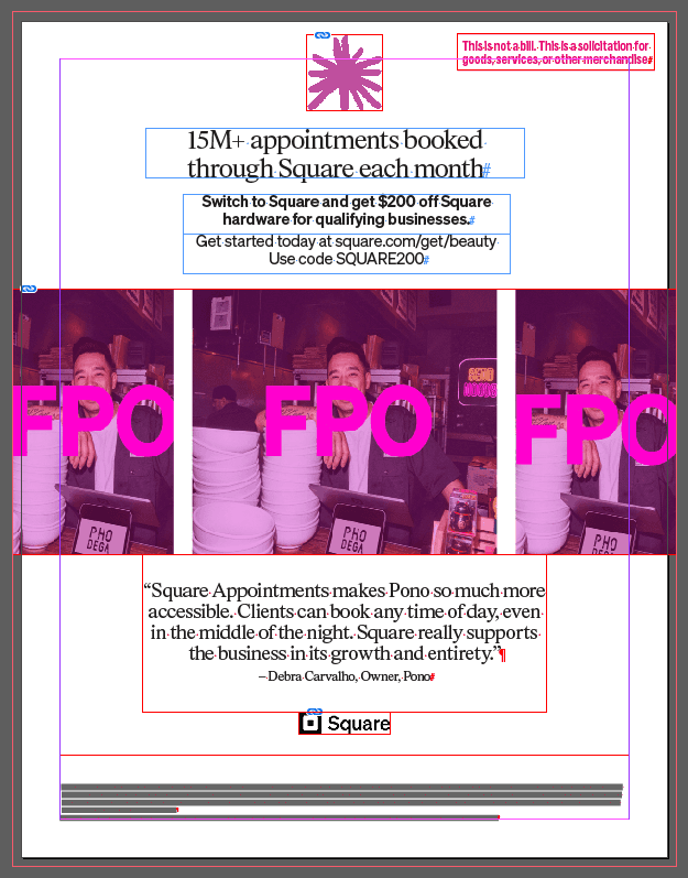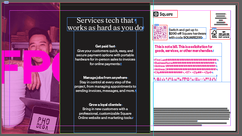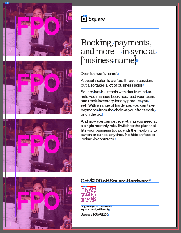 The lower funnel direct mail program ran continuously. Letters, postcards, and weekly trigger pieces went out on a regular cadence across multiple audience segments, each with slightly different copy, images, and offers. On paper they were variations. In practice they were treated as individual builds from scratch every time. A designer would set up the file, place the images, flow the copy, check the specs, and hand it off to the print vendor. Then the next week it would happen again, almost identically. There was no templated foundation, no shared naming system, no way to batch the work. The result was a program that consumed far more production time than its creative complexity warranted.