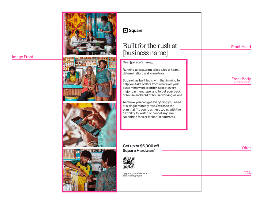 The approach was to build a copy and image matrix alongside distinct template mechanicals. Every element in each mail piece was catalogued, named, and mapped so that the design files and the print vendor's workflow could share the same naming conventions from the start.