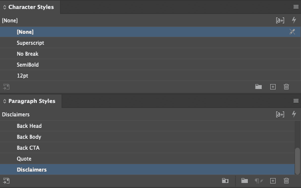 A master mapping document was created to catalogue every element and section with unique names and identifiers, mirrored across all template mechanicals. In InDesign, character and paragraph styles locked in the visual formatting. GREP styling handled edge cases, including consistently superscripting the final character in specific text strings regardless of what copy was flowed in.