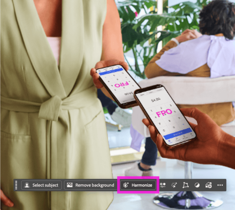 I began by finding a base image with a clearly identifiable "beauty" setting, and then a tap to pay moment that could fit in the base image.