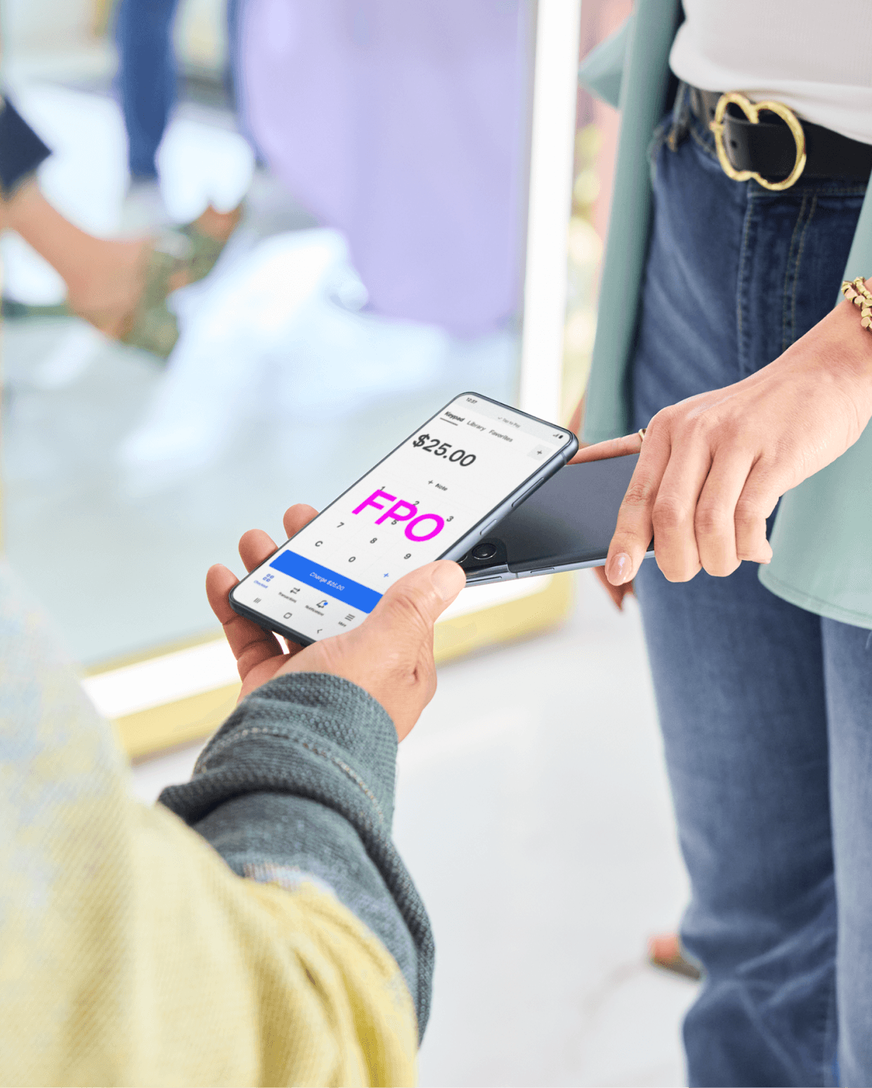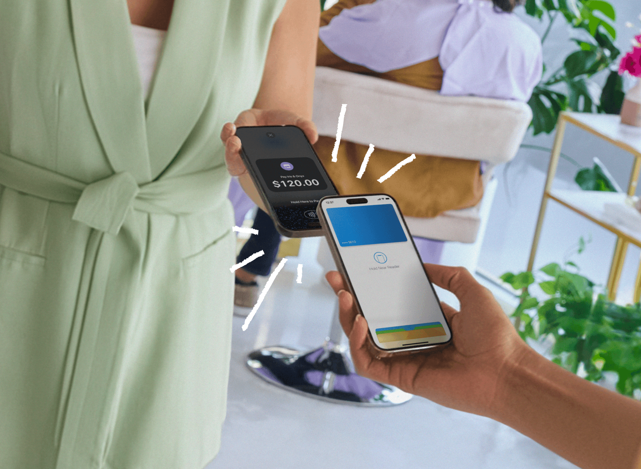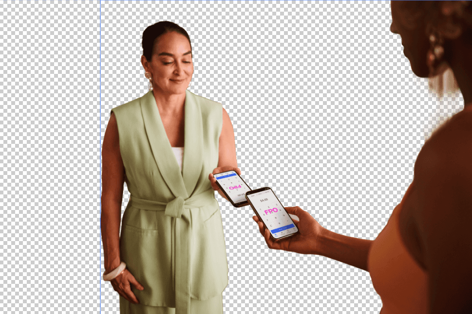The marketing work we do frequently varies based on our target audience and channels. For this specific project we were tasked with showing a Tap to Pay moment between two iPhones within a beauty space. The challenge we ran into was our limited selection of images to choose from and the final crop size.
